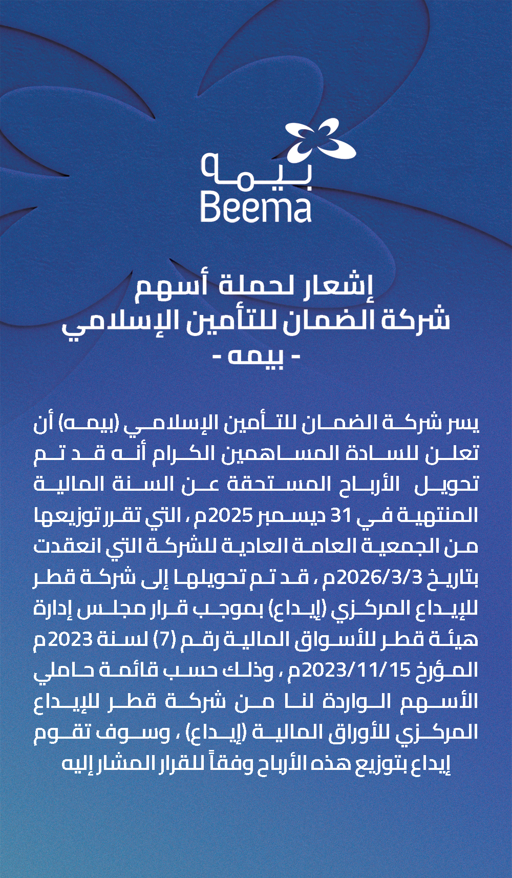 نحن نؤمن بتعزيز الشفافية والثقة والتواصل الفعال مع مستثمرينا الكرام ، فريق علاقات المستثمرين لدينا يعمل لتقديم معلومات شاملة وحديثة لمساعدتك على اتخاذ قرارات مستنيرة بشأن الاستثمار في شركتنا.